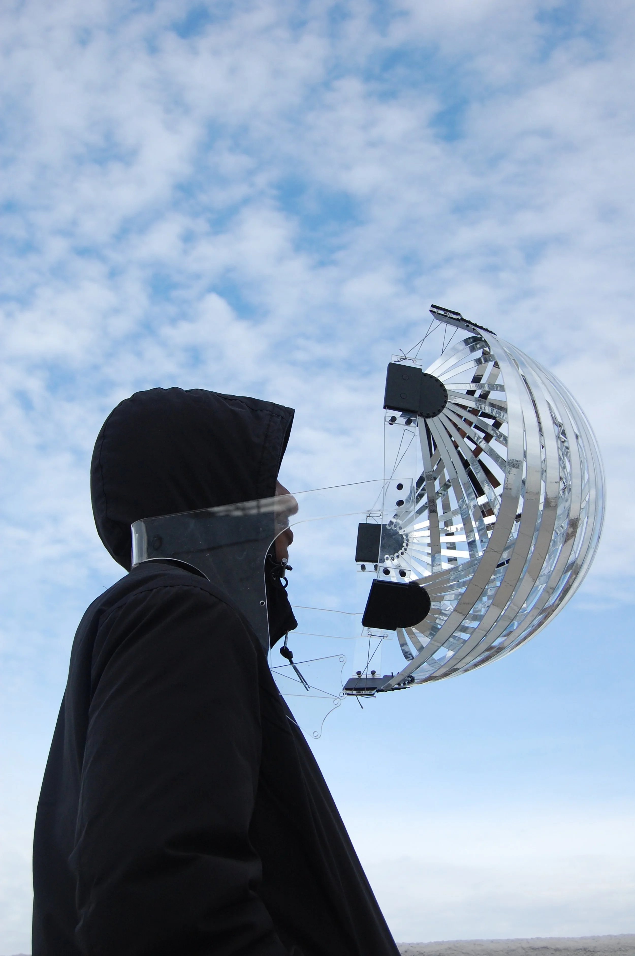 Pokorny's intervention makes this fleeting phenomenon visible. A vertical axis wind turbine captures and reflects the movement of air and light. Constructed with shape-shifting Nitinol springs, the structure subtly deforms in response to temperature changes, offering a live reading of the atmospheric conditions it inhabits.