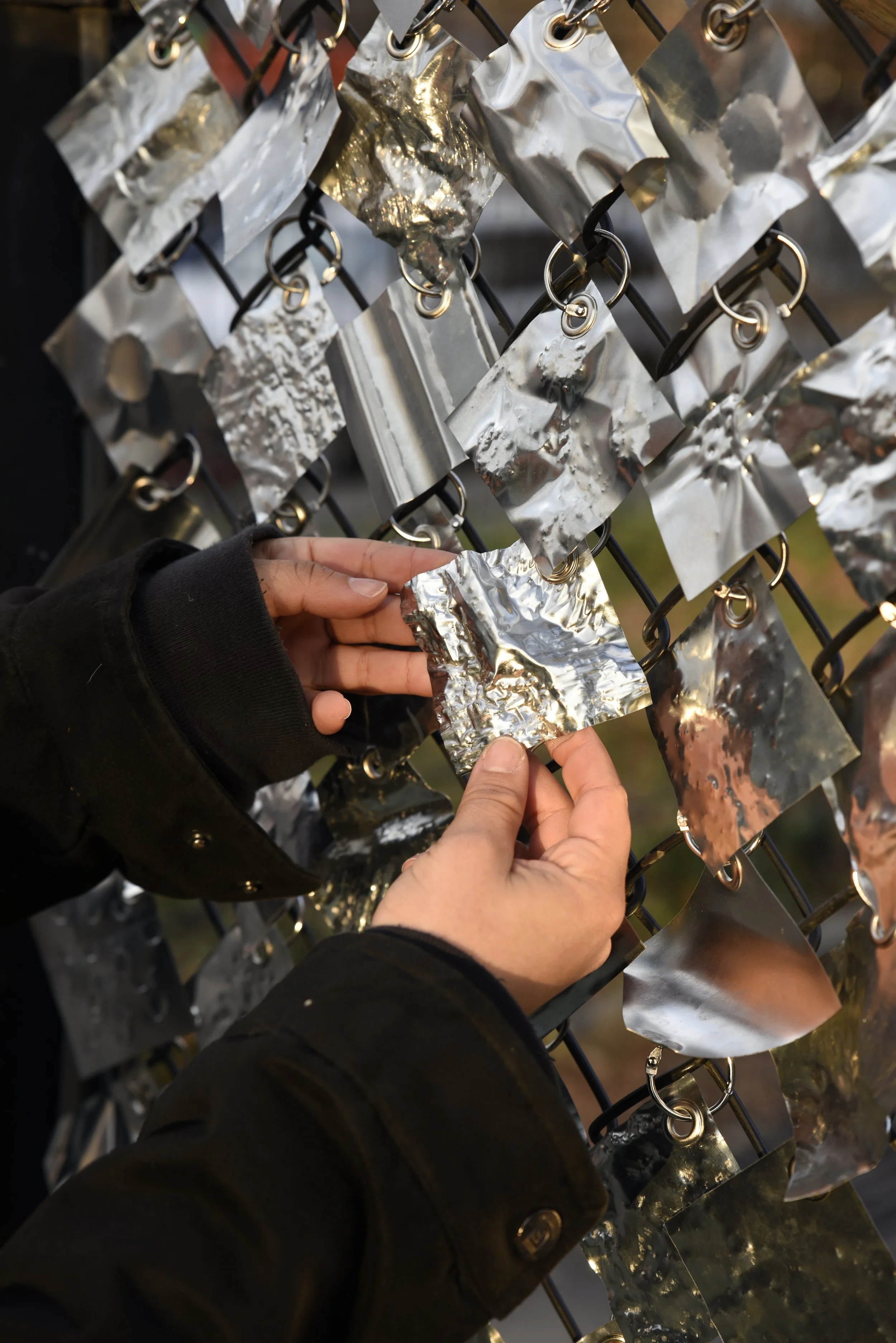 Constructed with lightweight reflective strips, transparent acrylic, and delicate mechanical elements, Pausphere is designed to respond to subtle air movements. The structure shimmers and shifts with a softness that mirrors nature’s own rhythms. It is not static, but alive—moving in dialogue with its environment, blurring the boundary between the organic and the engineered.