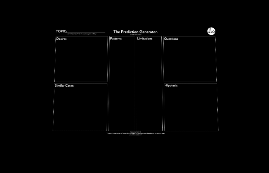 The Prediction Generator is an ideation instrument created by delaO design studio to help designers, researchers, and future-thinkers generate, validate, and articulate any design brief research hypothesis, or future scenario. Learn more here.